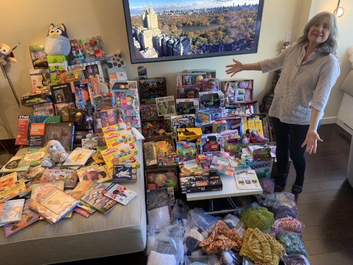 AND RECEIVED 474 TOYS, 92 BOOKS AND 24 SETS OF HAND MADE HATS AND SCARVES.